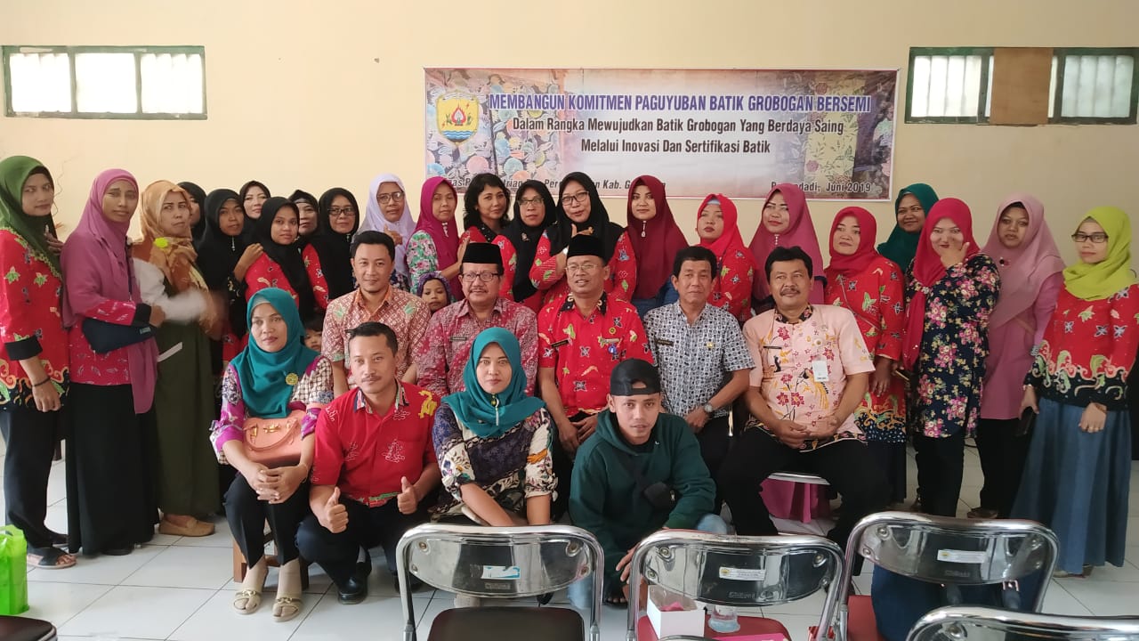 Dalam rangka MEWUJUDKAN BATIK GROBOGAN BERDAYA SAING MELALUI INOVASI DAN SERTIFIKASI BATIK. Dinas Perindustrian dan Perdagangan Kabupaten Grobogan melaksanakan kegatan Membangun Komitmen Bersama Paguyupan Batik Bersemi Kabupaten Grobogan